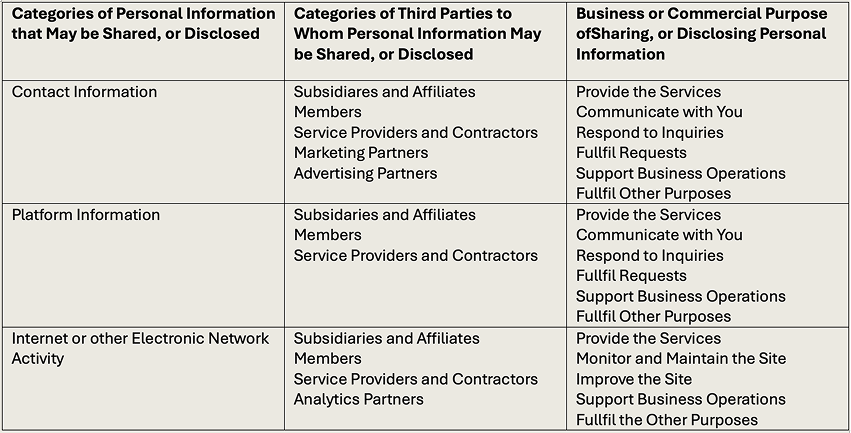 c. Selling and Sharing Personal Information. We do not sell or share your Personal Information in exchange for monetary consideration; however, we may use tools described above (such as Google Analytics), which may be interpreted as sharing your Personal Information. As such, please see the above sections, Information Automatically Collected and Choices sections for more information regarding opting out of use of these tools.